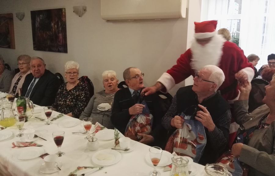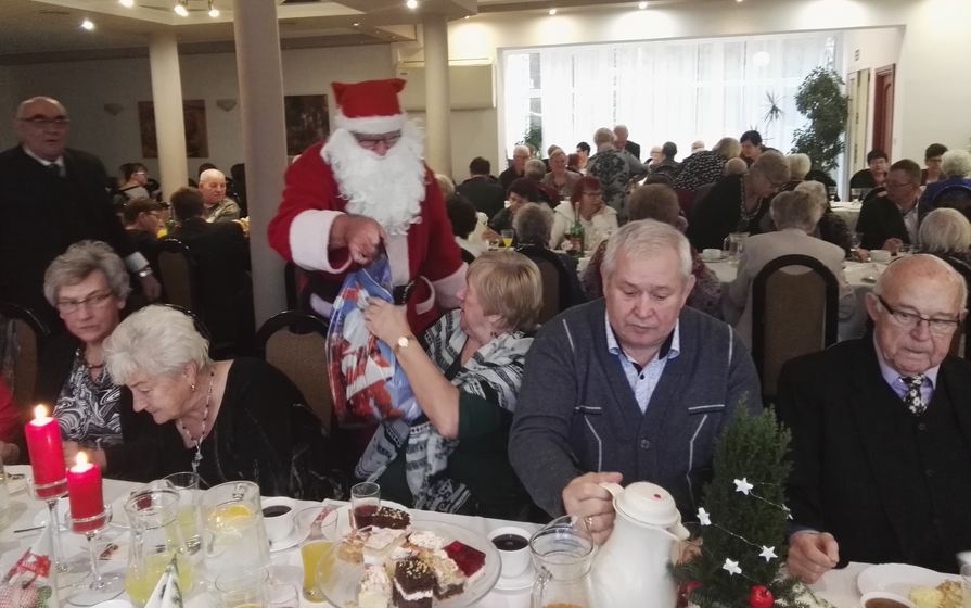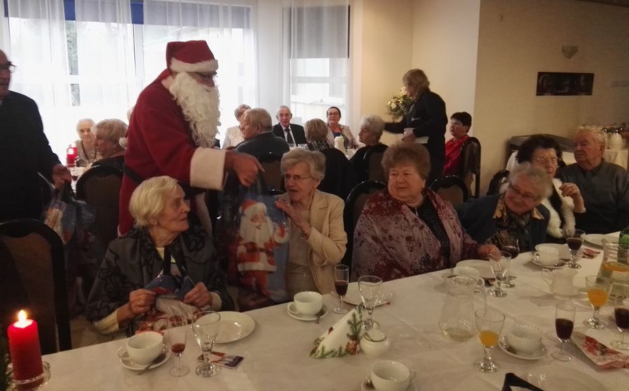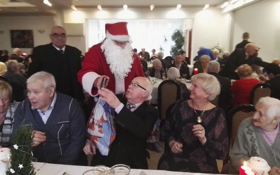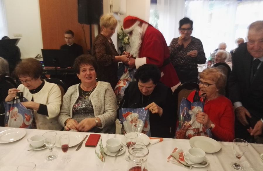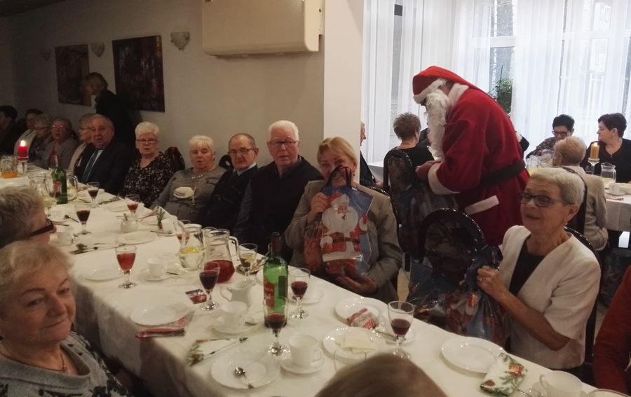 uczestników wigilijnego spotkania świątecznymi paczkami.